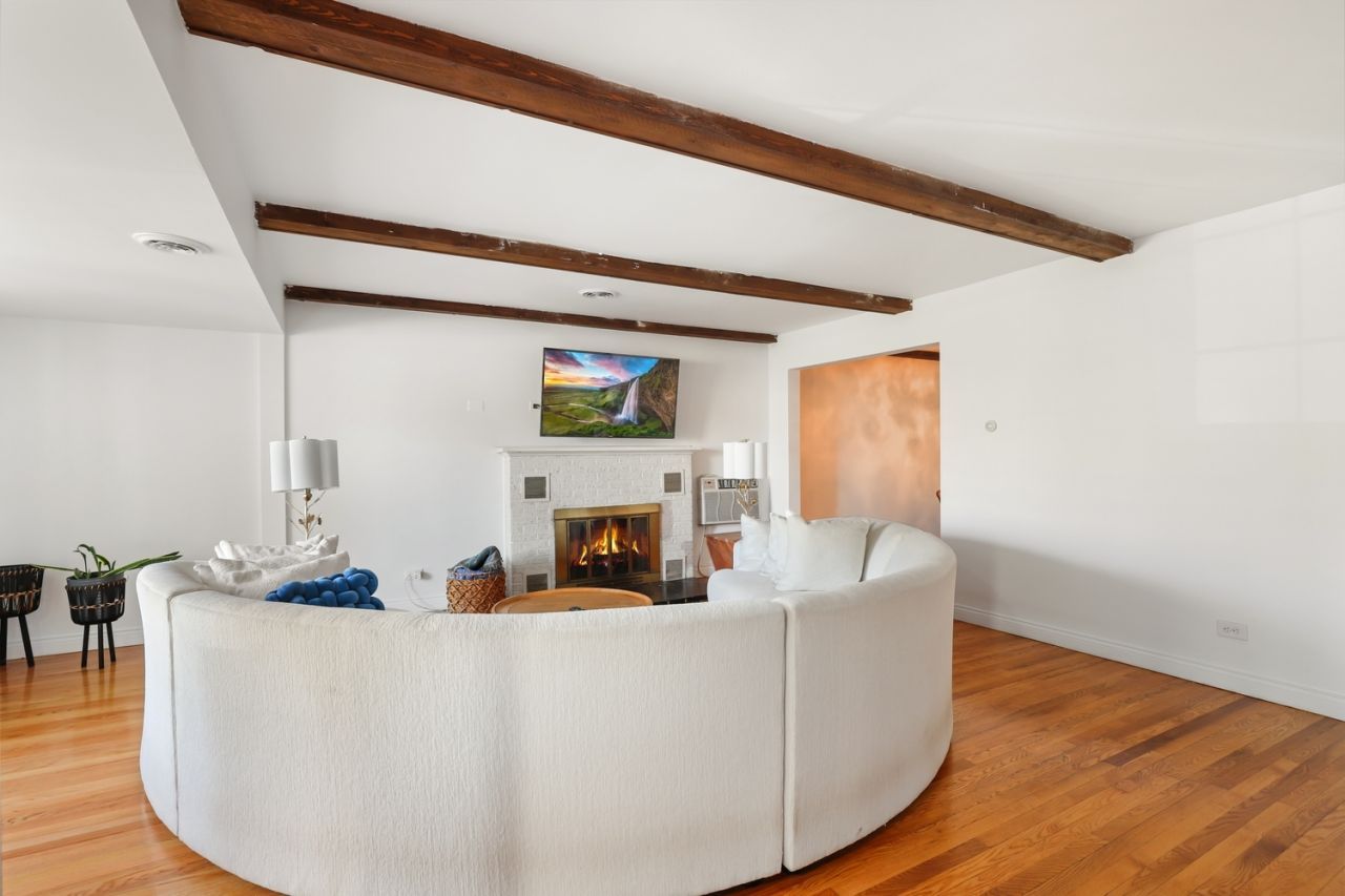 Welcome home to waterfront living in the heart of Oak Lawn! Step inside to an inviting living room with charming wood ceiling beams, restored hardwood floors, a large picture window and timeless brick fireplace. Enjoy special meals in the formal dining room with an original built-in china cabinet. The eat-in kitchen is full of character with vintage tiled backsplash, nostalgic banquette table and newer stainless steel appliances. Retreat at day's end to the main floor primary bedroom boasting double closets and an attached bath. The lower level family room is the perfect place to entertain, complete with a retro bar and powder room. Upstairs, you will find 2 generous bedrooms and a newly remodeled spa-inspired bath with a step-in shower and large soaking tub. The upper level offers an enchanting 4th bedroom with rustic knotty pine paneling, built-in desk, bed and storage. Outside, enjoy peaceful water views in the front, a private yard in the back and Lakeshore Park across the street. This home is ideally located near shopping, dining, Metra station, hospitals, parks, schools and everything Oak Lawn has to offer! Come see today!
